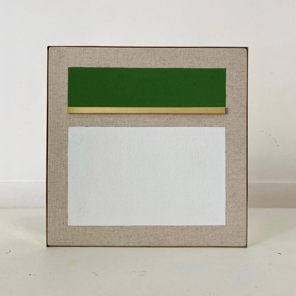 BASTIDOR DE MADERA CON LINO NATURAL Y COLORES ACRÍLICOS Y MARCO DE LATÓN