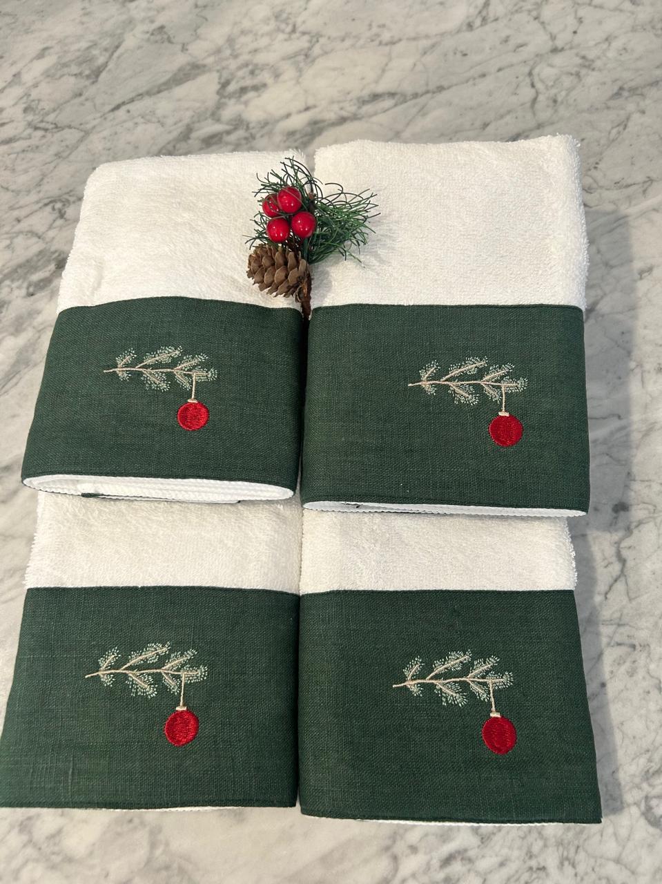 TOALLAS FACIALES CENEFA DE LINO NAVIDAD